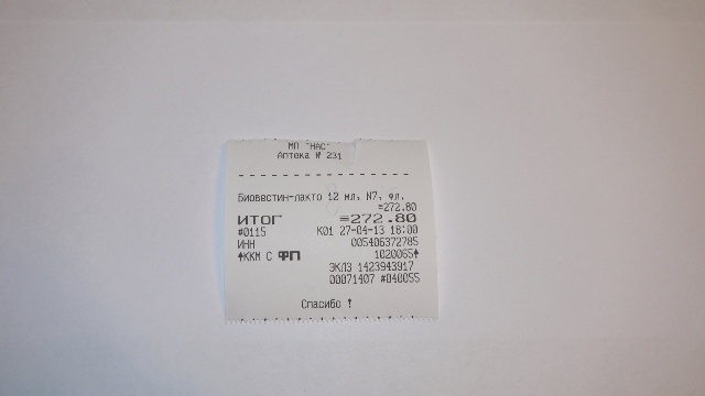 8)Чек 8 (биоавестин-лакто) – 272,80 руб