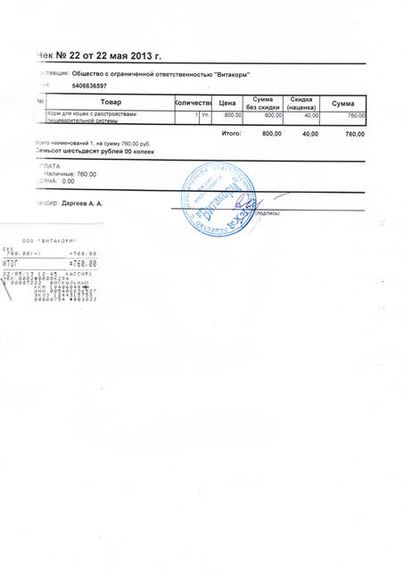 Чек 4 (корм для Дашт Дегистив 2 кг) – 760,00 руб