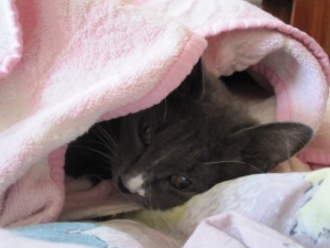 Кошечку назвали Дашей. Пока ребёнок на передержке отъедается и приходит в себя.