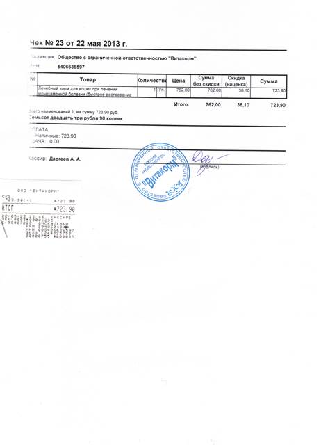 Чек 5 (корм для Леси Уринари 2 кг) – 723,90 руб