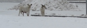 Ездила еше несколько раз в Октябрьский. Но без результата... Спрашивала,раздавала листовки,беседовала с бомжами,посетила несколько заброшенных амбаров,клеела еще объявления. Все говорят,-"не обращали внимания на собак,здесь их много бегает" Звонков не было... Что еще предпринять? Анна говорит,что ее видет на свалке,но только издали. А как проверить-эта собака или не она ????Вот ее фотография с ее дочкой( на фото ,эта собака -белая с легким оттенком кремового)