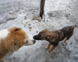 Джелька последнее время совершенно перестала рыкать на Муху за дверью, а наоборот, слыша Мушкины шуршания, ложилась у двери и печально так поглядывала и поскуливала. Пока меня, трусихи, дома не было, мама решилась. Она выпустила Мушку во двор, а потом Джельку. Что там было