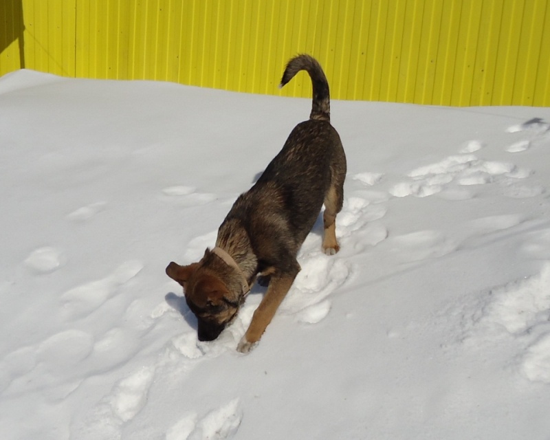 А бегает и скачет как заяц, лапы длинные, пронесется вдоль дома туда-сюда раз двадцать и только потом уже начинает все обнюхивать и ковырять ) Когда снежок был пушистый все время "мышек ловила", по уши моську в снег зарывала и ковырялась там