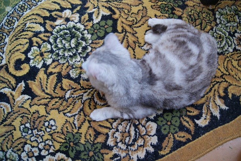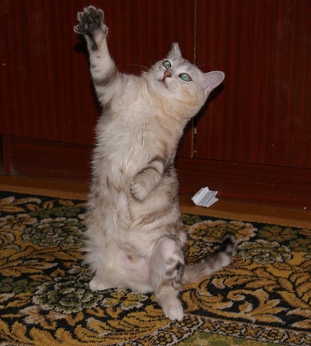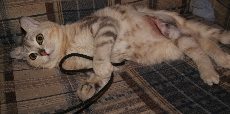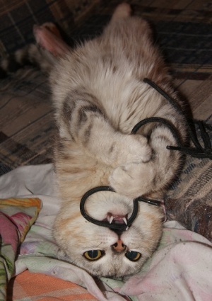 У нас всё замечательно, лапка в норме, Кейси уже целыми днями играет(особенно с котом наравне дом разносят