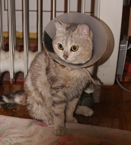 Кейси пока у нас, уже сняли воротник, она правда стала не такой мурчащей, не такой спокойной, носится с котом с утра и до вечера, играет со всем, что попадёт под лапу, и даже если эти игрушки больше неё