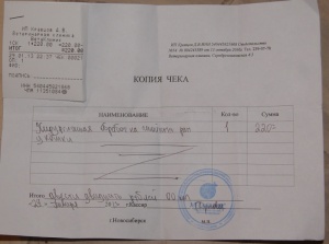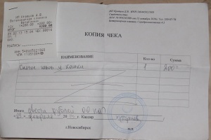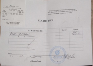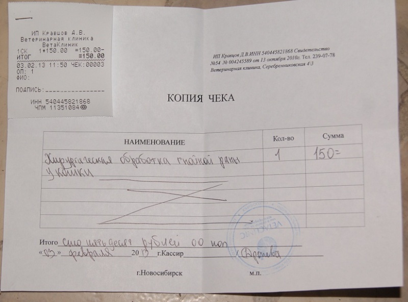 Хирургическая обработка гнойной раны(в чеке написано вет.услуги,утро) - 300руб.