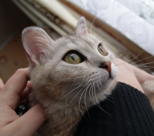 а она побежала нюхать обувь и потом сразу на руки, мурчать, больше не кусалась, узнала(кошки(или вообще животные) долго помнят запах, особенно кошачий, собачий)! Она меняется, ушки уже вверху не чёрные, мордочка начала вытягиваться, посветлела сильно!