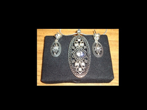 Набор с жемчугом. Светлое посеребрение и белые жемчужины. Неудачно сфотографировала, ну никак не могла убрать вспышку! Но набор светлый, летний, лёгкий.
