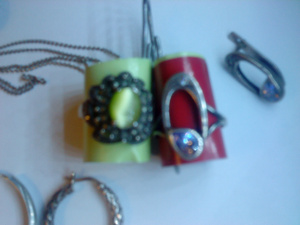 1. Набор браслет + сережки (материал наверно пластик, хотя не уверена) - 150 руб