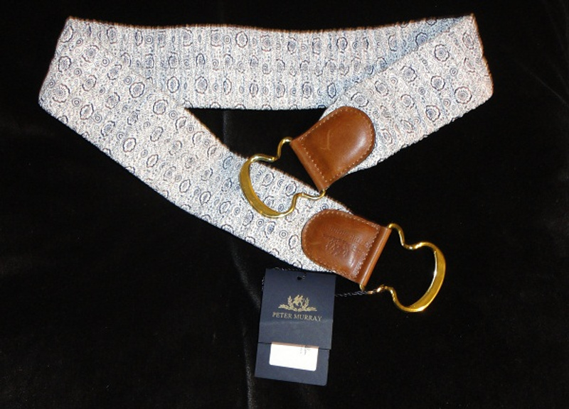 2. Пояс тканевый Peter Murray (резинка) с коричневой кожей, объем 86 см, новый, но кожа такой выделки, что имеет свойство царапаться. Будет отлично смотреться с рубашкой, джинсами или брюками.