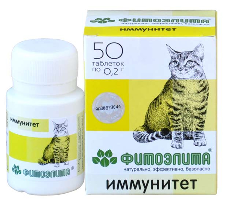 Фитоэлита Иммунитет для кошек (50 табл.х 0,2 г) * 2 баночки. Обе за 100 руб.