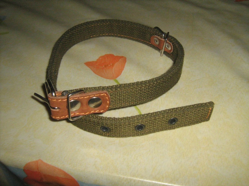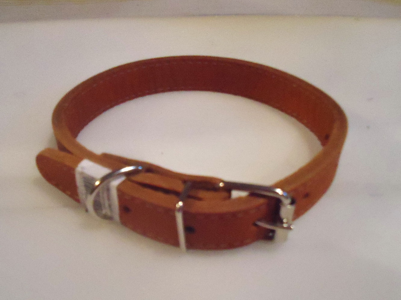 Ошейник, кожаный, двухслойный, размер кожи до первой дырочки - 30 см, до крайней - 42 см., ширина 20 мм. Абсолютно новый, 70 руб.