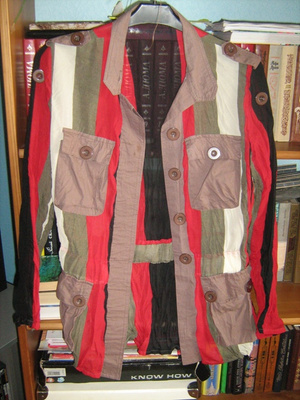 ) Размер 18, но маломерит. Длина по спинке 38 см, объем под передними лапами 52 см.2. Пояс тканевый Peter Murray (резинка) с коричневой кожей, объем 86 см, новый, но кожа такой выделки, что имеет свойство царапаться. Будет отлично смотреться с рубашкой, джинсами или брюками.