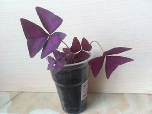 3. Оксалис (кислица). Популярное комнатное растение - Кислица Деппе (Oxalis deppei). Это травянистый многолетник, который можно использовать как стелющееся или ампельное растение. Листики тройчатые, оригинальной сердцевидной формы, нежно-зеленые, с пурпурным узором. Красноватые цветки собраны в зонтики по 5 - 7 цветков в каждом.