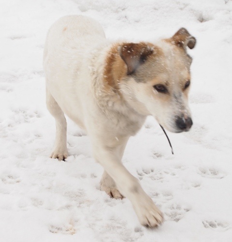 У него, кстати, нет клички. Хозяйка звала его Шариком, окружающие соседи и родственники хозяйки - почему-то Белым; передержка кличет Беляшиком ( пёс, разумеется, никого не поправляет). Наверное, пора объявлять конкурс на имя Псу.