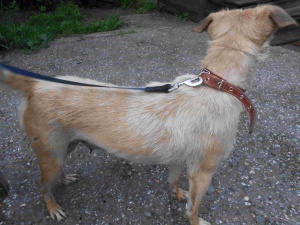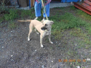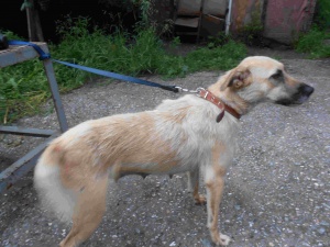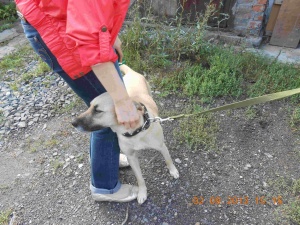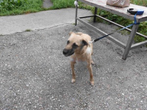 Это,конечно , был не самый лучший вариант, но он был единственный: передержка не нашлась к тому времени, а забирать ее из ПЛС нужно было срочно, и так там ее продержали на неделю дольше. Был выбор : либо вернуть ее на место , что вообще не вариант, либо сюда. Тем более, собаки у меня здесь при гаражах живут уже более 7 лет, людей я там всех знаю, собаки в безопасности ( конечно, относительной), у них у всех будки, я каждый день их кормлю, в общем, я была за Линду спокойна, да и прижилась она сразу и даже сразу же одного из сторожей выбрала себе хозяином. В первый день мы ее привязали, чтобы не убежала и поняла, что теперь она будет пока жить здесь, хотя она и сама не рвалась никуда уходить. Я планировала привести ее в " товарный вид" и пристраивать потихоньку.