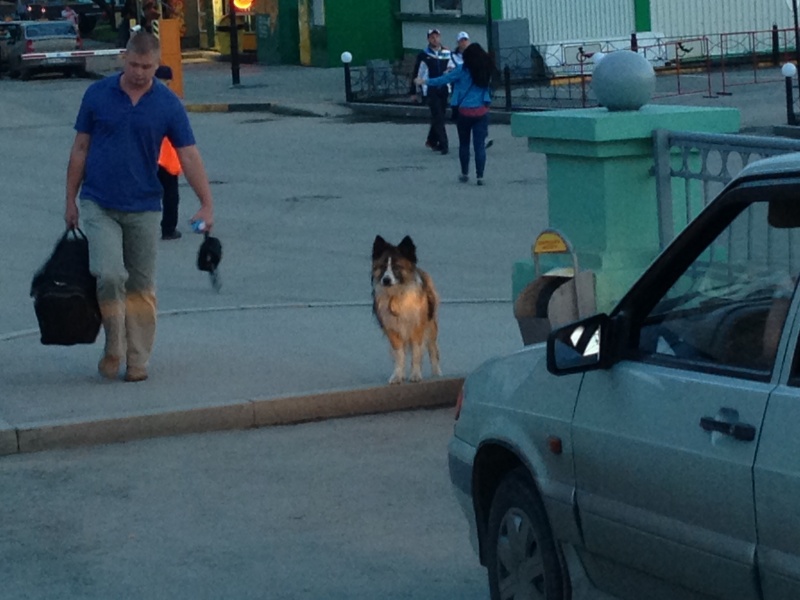 Видели сегодня с мужем собаку на вокзале. Собака явно чья-то, в ошейнике. Бегала потерянная, кого-то искала. В руки не пошла. Мы полчаса с мужем пытались её поймать (посмотреть, есть ли на ошейнике телефон, как минимум), но она убегала все дальше и дальше(( Собака красивая, и так жалко её! Фотки не самые удачные, но хоть представление составить...