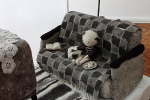 Помимо основных экспонатов представлена ещё замечательная фотосессия процесса создание работ и кошки Матильды, очень активно помогающей