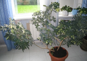 №2 Шеффлера. Большая. Плохо сформированная, размах ветвей в разную сторону более 1,5 метра. Есть голая часть у веток (что плохо). В большом горшке. 350 руб.