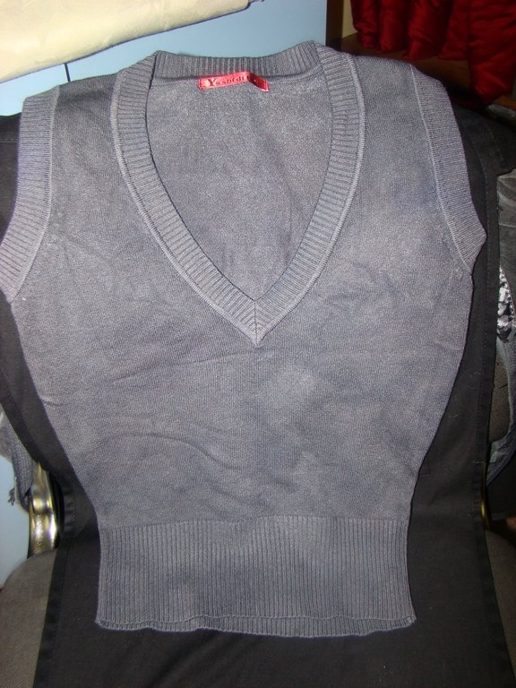 А также предлагаю жилет. Он абсолютно новый. Покупала год назад перед поездкой за границу. Слетал он туда в компании еще пары не надетых ни разу вещей и вернулся благополучно в Россию. Размер 42-44. Ближе к 44. Постиран однократно и все. Цвет, к сожалению, не смогла правильно передать, но он темно - серый. Очень насыщенный и красивый. Последнее неудачное фото более приближает цвет к реальному.
