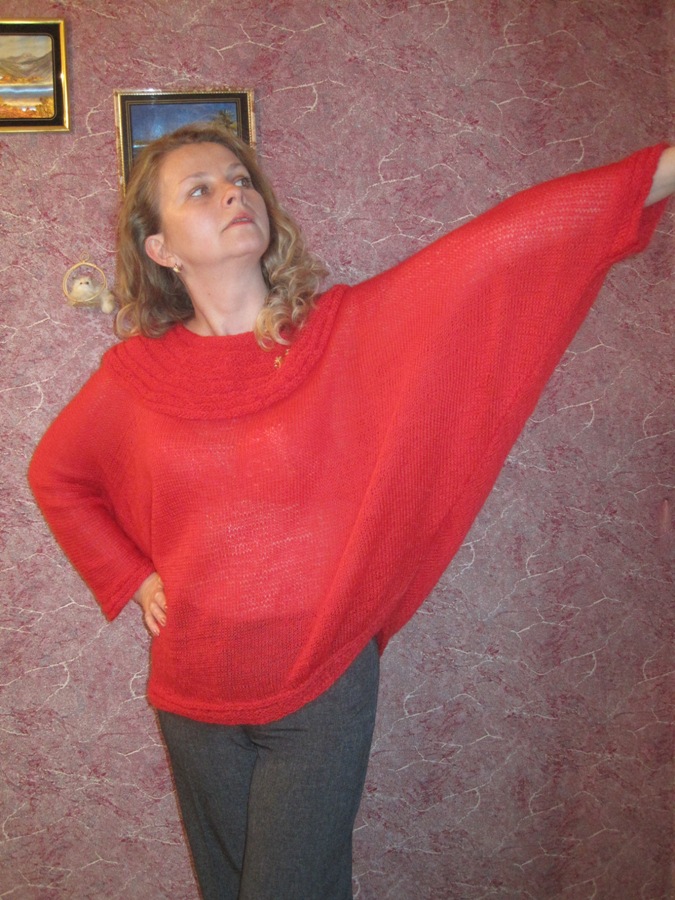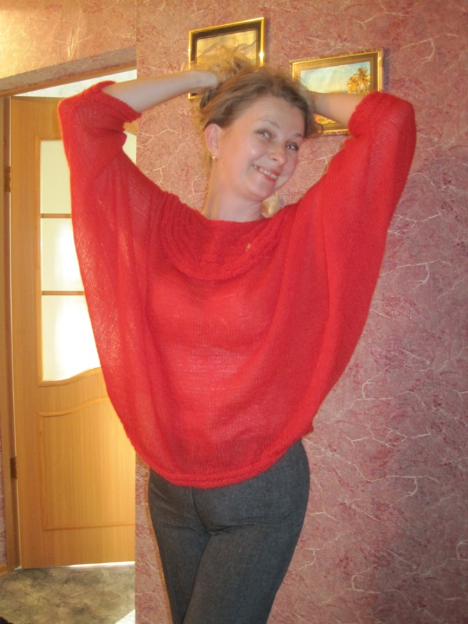 В пользу подобрашки Люськи. Джемпер, вязала сама, итальянской мохер, не угадала с размером, размер примерно 48-50, мне большая. На морду-лица не смотрим, смотрим на кофточку))