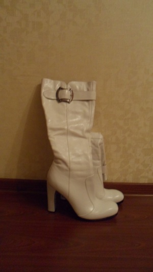 Продам сапоги 38 размер чисто белые, голяшка в диаметре 36-37 см, еще плюс резинка, б/у 1 раз на корпоративе, набойки родные, прошу 800 руб