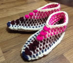В помощь животным моя мама навязала теплых следиков, которые очень удобно носить дома.