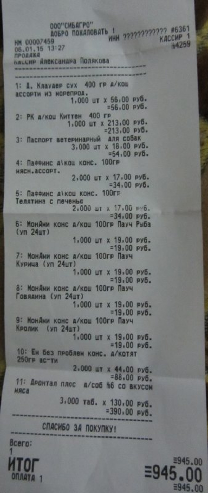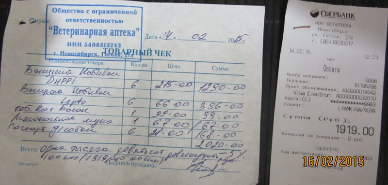 Чек2-корм котенкуДизелю, адресник Барби и Барри-750руб.