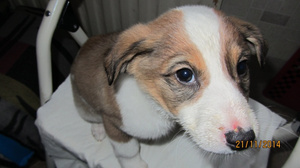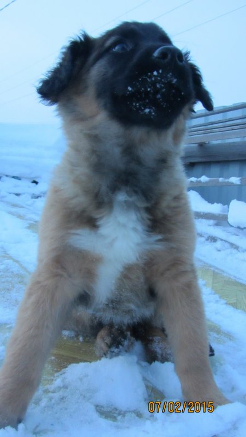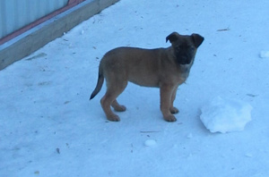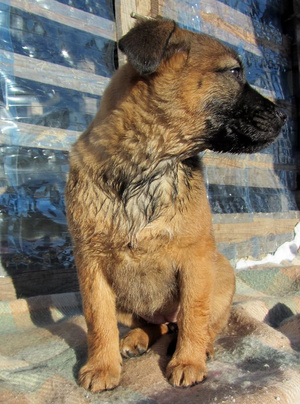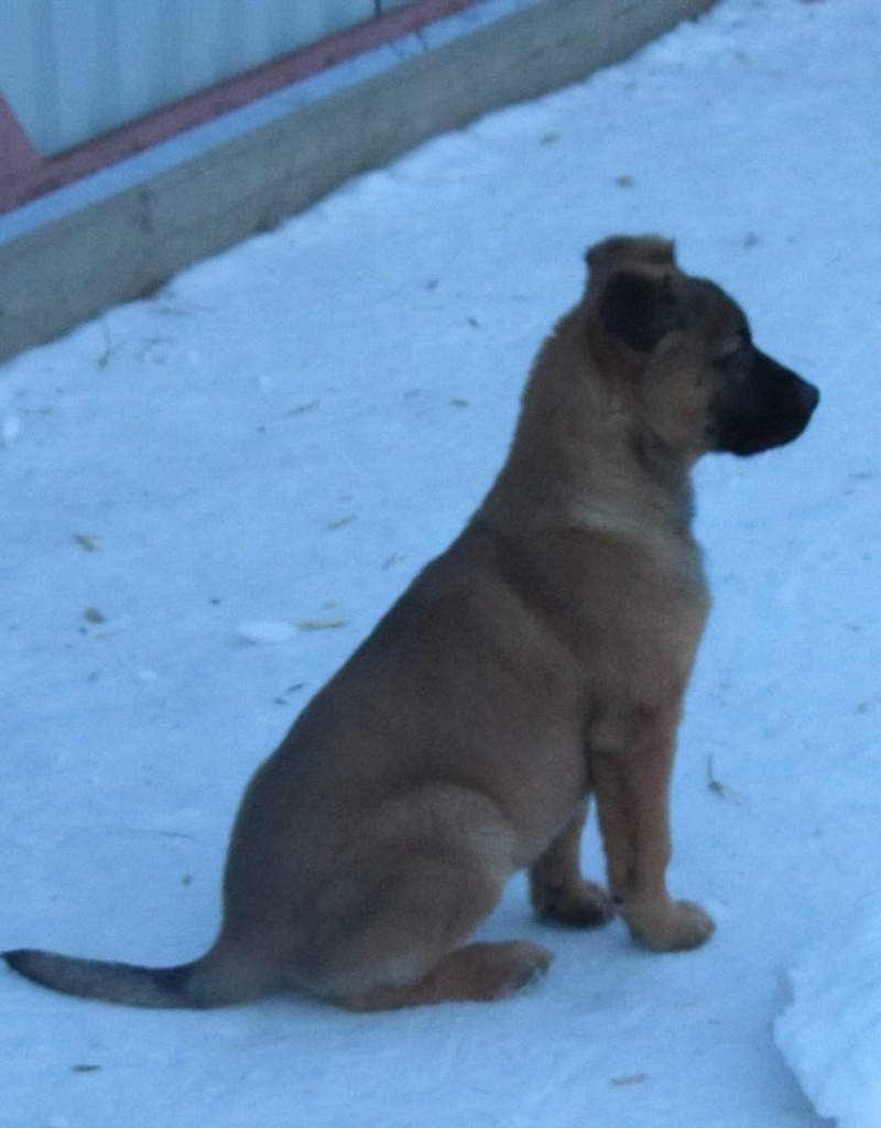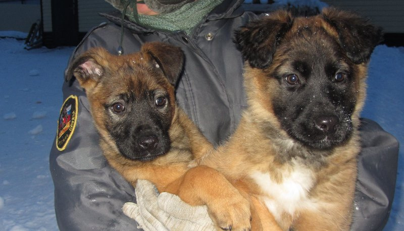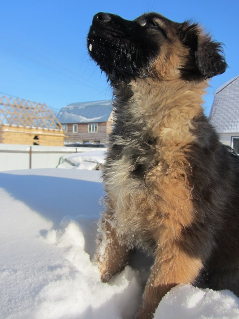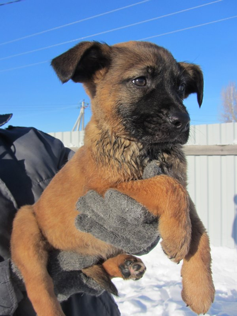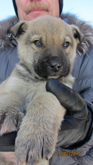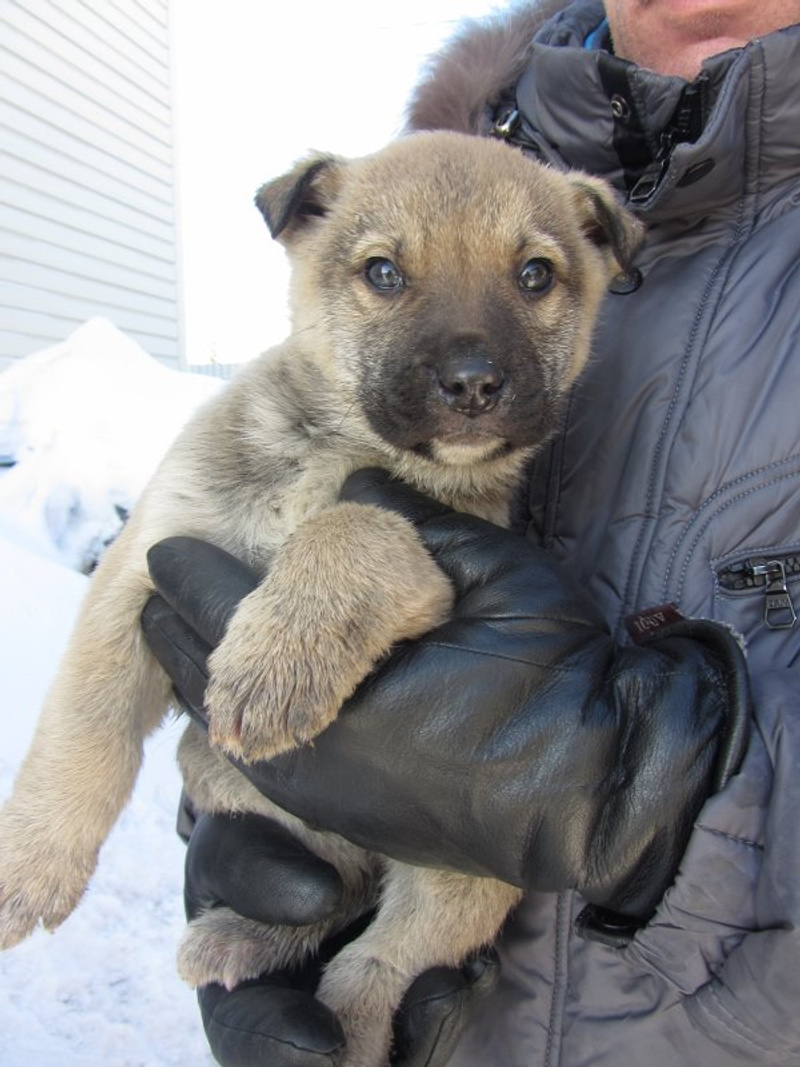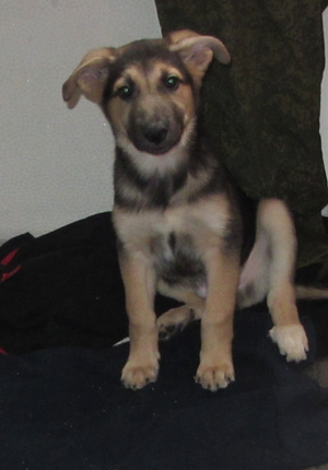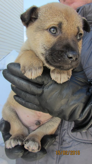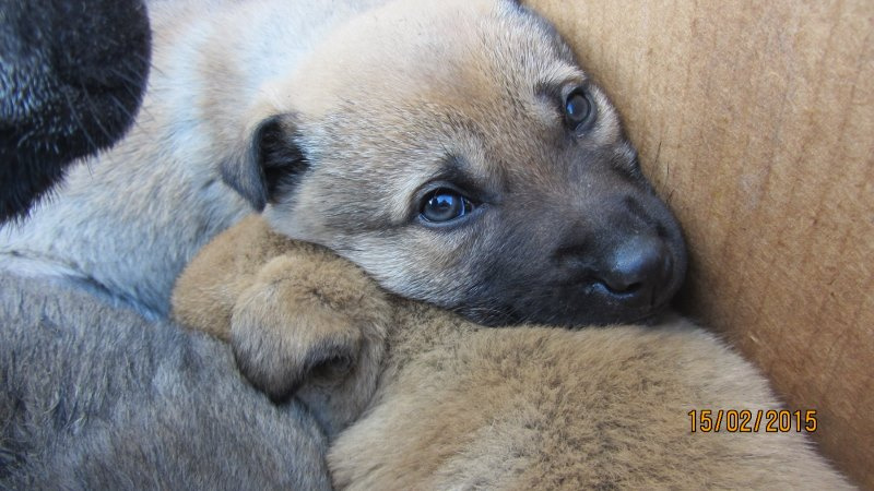 Родилось 6 щенков. Четырех щенков он сам пристроил, а две девченки остались. Вчера съездили посмотрели- бегают между машинами и даже в сторону трамвайной линии пытаются бежать.