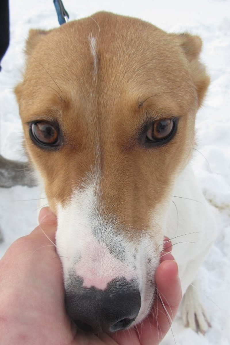 Гончак Грант привит.А вот этот пес отличный! Его бы в квартиру, на улице он мерзнет.Он послушный,знает команды,терпит довыгула и ничего не грызет.Подарок-собака.