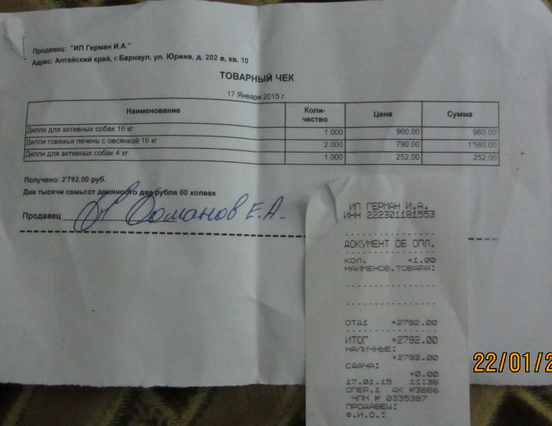 Чек1-корм для далматина Джины, Барби и Дины-3090руб.