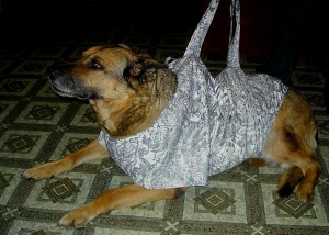 Я несколько лет назад шила куртку с ручками для пожилой собаки.