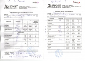 Выкладываю анализы крови-за воскресенье когда поступили в клинику и за сегодня.