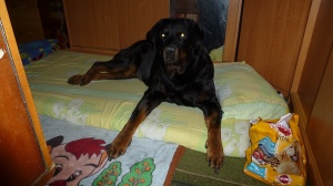 Дайночка хорошо кушает, таблетки от печени и почек придумала засовывать в макароны-съедает, не замечает что там они...а то выплевывала даже в сыр завернутые.Вторую неделю ест канвинт хондро макси, он подошел, реакции на него нет, с первых дней приема стала с него лучше спать, поможет-не поможет облегчить трение суставов посмотрим потом, сейчас рано что то говорить.