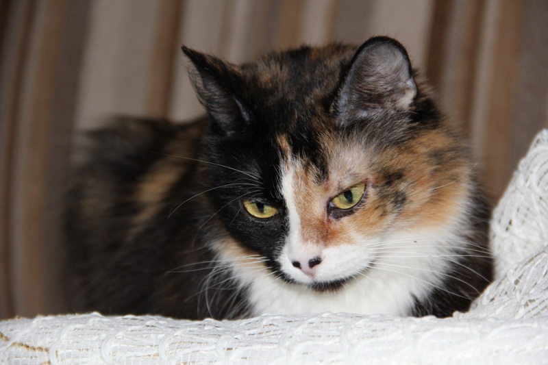 Очень харАктерная, Спит со мной, но любви ни ко мне, ни к мужу не проявляет. Такая кошка, гуляющая сама по себе.