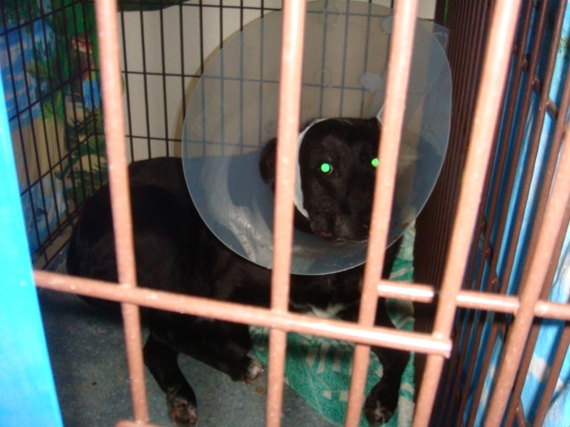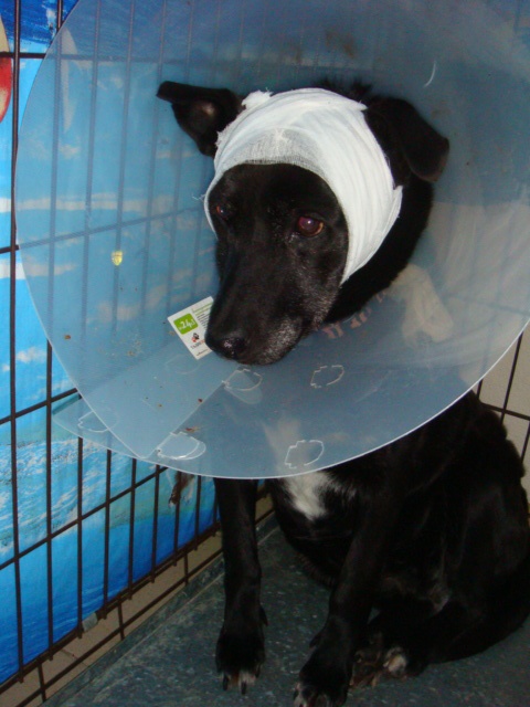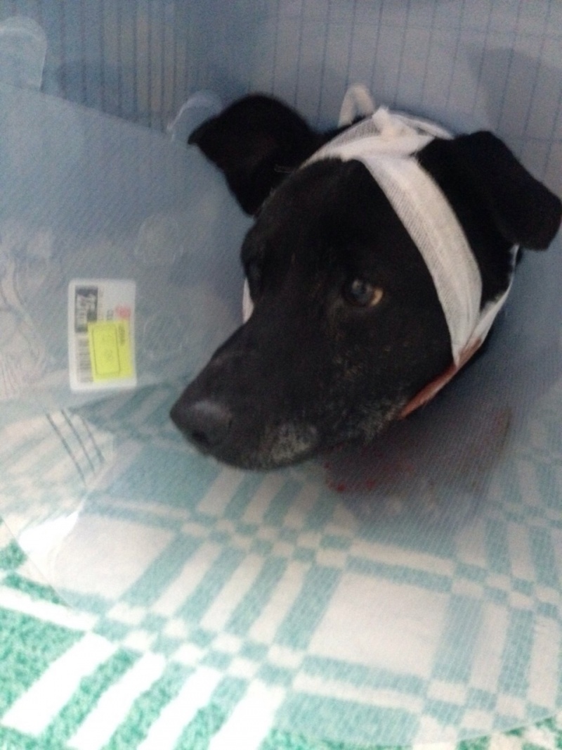 Собаку прооперировали в Ветлекаре. Абцесс. Я сегодня утром её не узнала, всю морду разбарабанило. Огромное спасибо тем людям, которые мне помогли в поимке и транспортировке