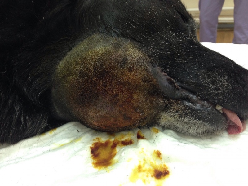 У собаки взяли материал для гистологии, так как утолщены края раны, возможно подозрение на онкологию