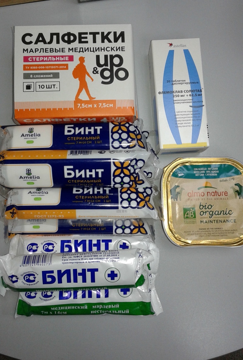 Ещё надо будет 8таблеток Амоксиклава докупать, я купила только 20табл. это на 10 дней. и нам нужны бинты, много бинтов.