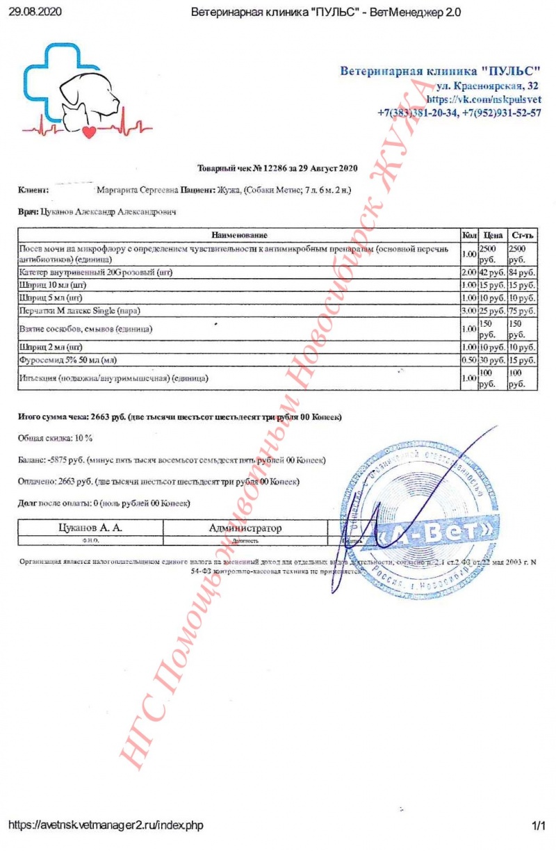 – Цистоцентез в клинике "Пульс", ул.Красноярская, 32 – 2663.00ք [чек №51]