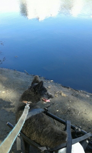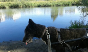 Погоняли по асфальту, сходили на озеро с уточками, потом ещё на лужайке повалялись, точнее я валялась (Жужка уморила меня своими спринтерскими забегами), а Жужик крутилась вокруг и жевала траву, гуляли больше часа.