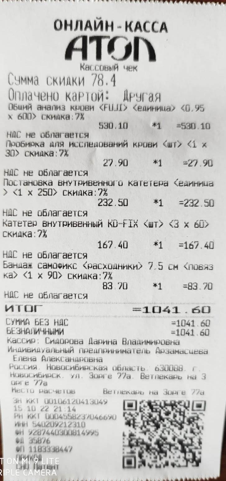 Вет.услуги МАРК на сумму – 1041.60р (15.10.2022) [чек №36]