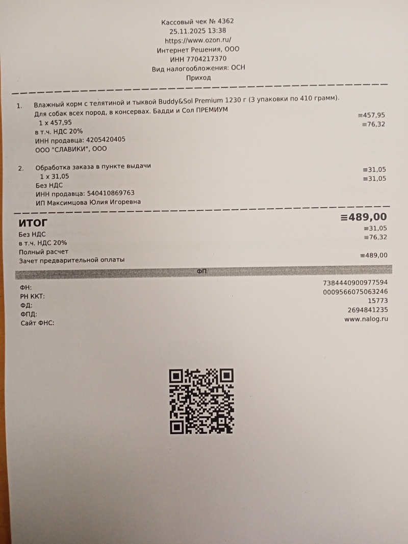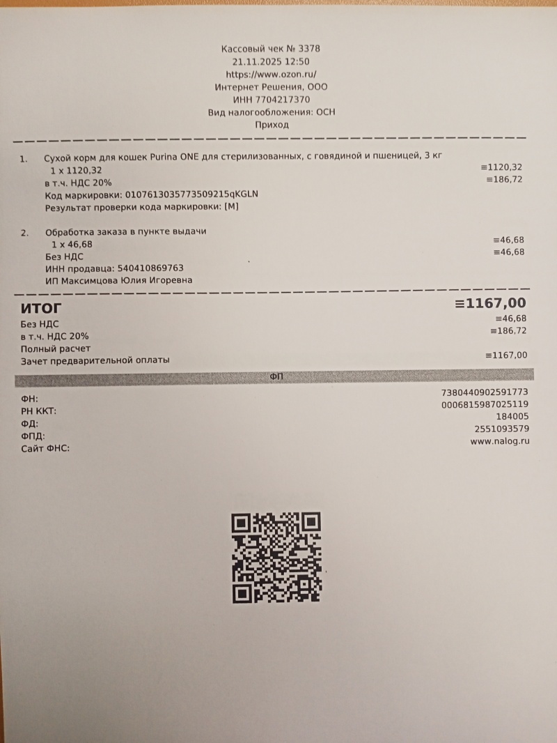 22.11.25 корм - 1167,00 руб. (фото 5);