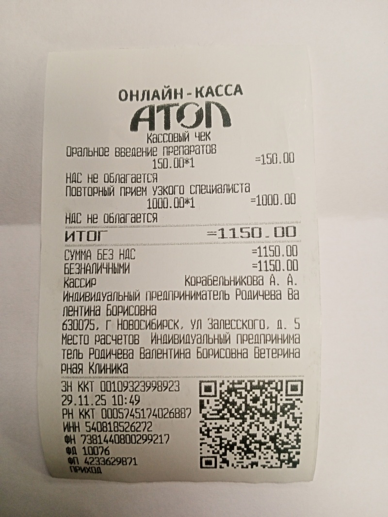 29.11.25 прием в клинике - 1150,00 руб. (фото 13);
