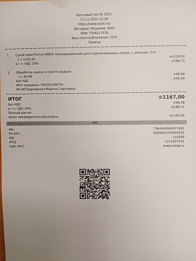 27.11.25 корм - 1167,00 руб. (фото 10);