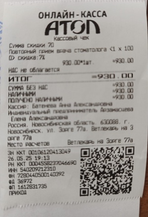 4. Консультация ветеринарного стоматолога в клинике " Ветлекарь " на общую сумму: 930руб.