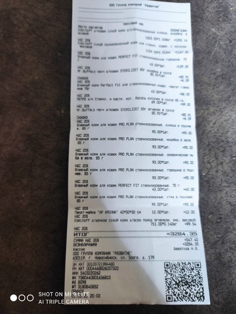 14. Корм для кошек паучи на общую сумму: 3,284руб.
