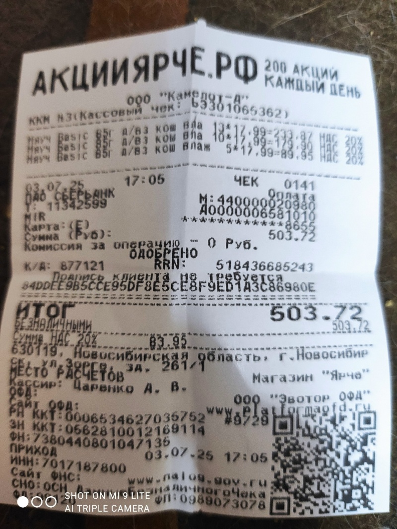 7. Корм для кошек паучи на общую сумму: 503руб.