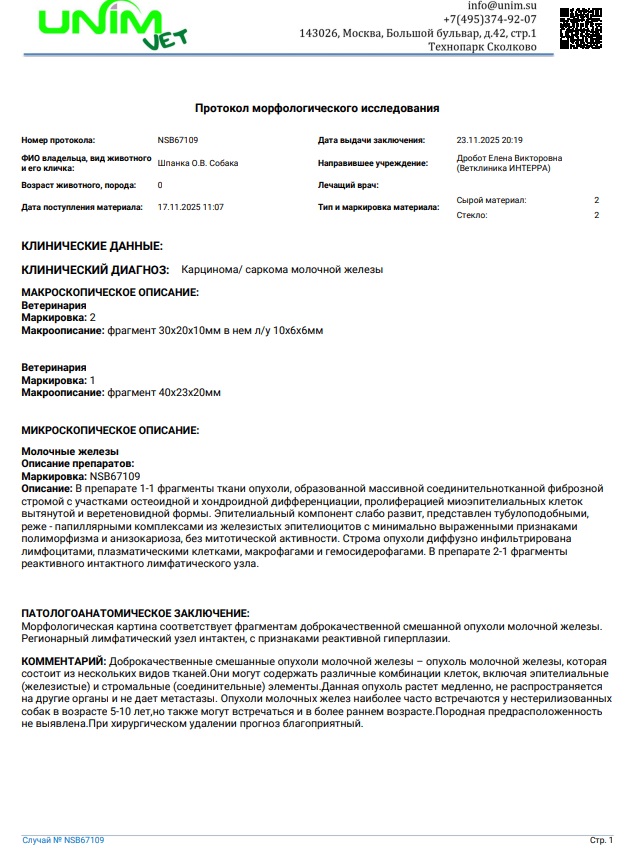 Завтра размещу скан гистологии, на фото всё плохо видно. И Уважаемые Благотворители, получены переводы 1500р и 500р, завтра всё оприходую, с телефона жутко неудобно.
