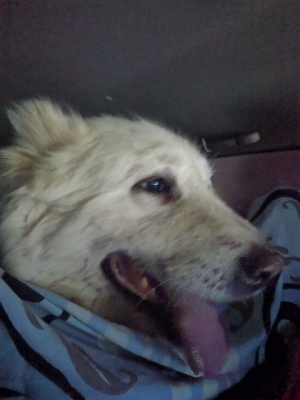 Мне позвонили в 18:40, что скоро будут выводить всех животных на улицу, и можно за Ярушкой приезжать. Диана с Пашей выдвинулись, Ярочка их узнала, обрадовалась, валялась в снегу, хватала снег, хотела пить. На лапку поставили катетер на всякий случай в дорогу.