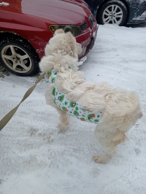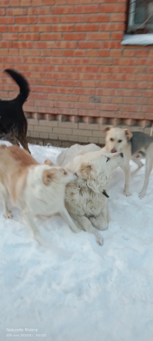 Все кобели к ней лезут опять изза крови, устаёшь отгонять. Яра на снег ложится, любит, а у самой лапки мёрзнут, оборачивается на них, лижет. Короче все помаленьку гуляли и загоняла в вольер.